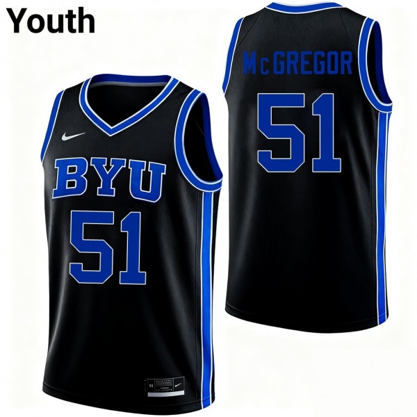 Jared McGregor BYU Youth #51 College Basketball 2025-26 Jersey - Black